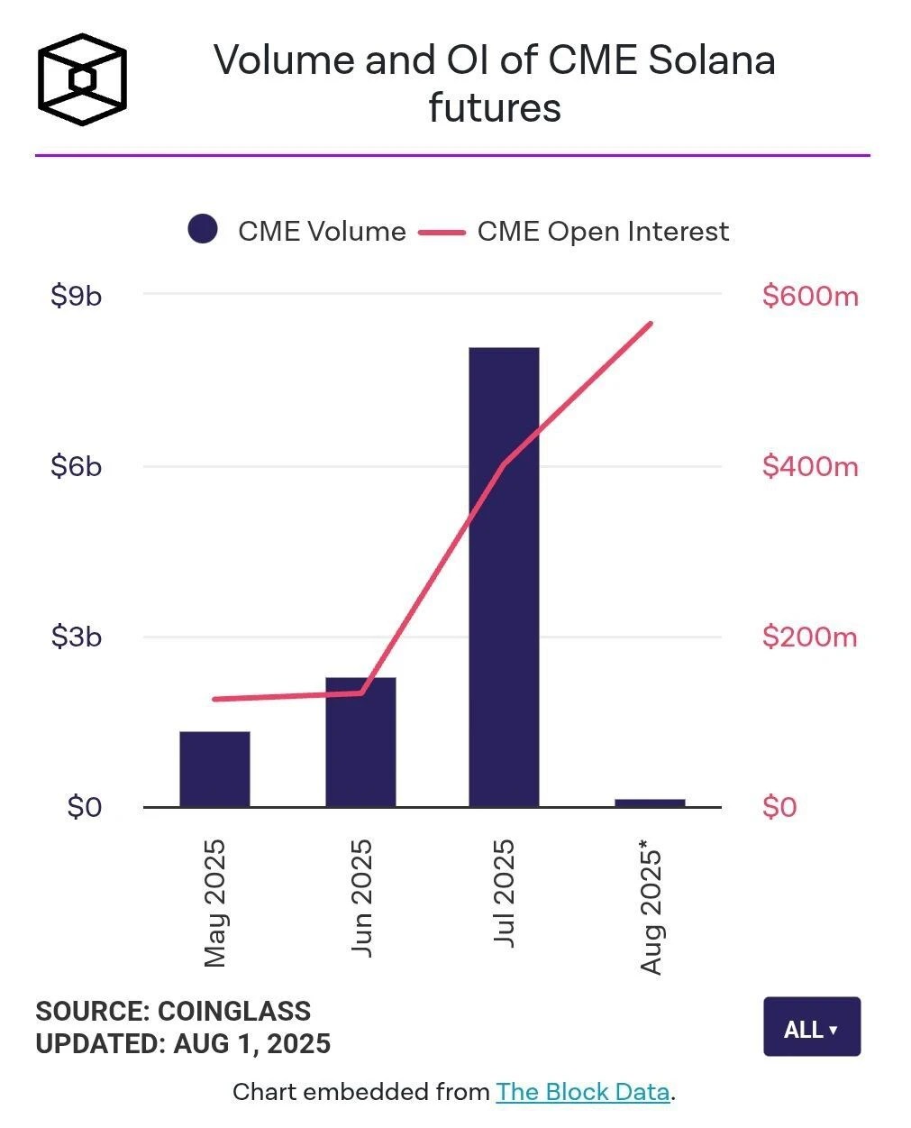 CME三大加密货币期货7月交易数据亮眼,Solana环比激增