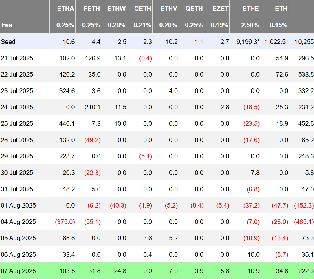8月7日监测数据显示,美国以太坊现货ETF净流入2.223亿美元,比特币现货ETF同期净流入2.774亿美元。