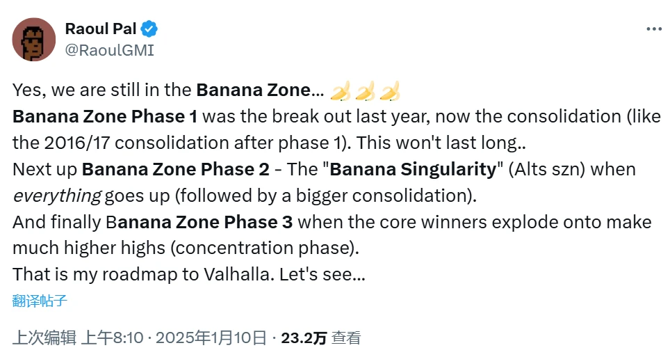 加密老江湖预言:市场即将进入‘香蕉奇点’狂欢期?