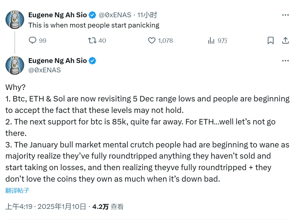 此外,特朗普即将上任也为市场带来新的变量。短期内,受经济数据疲软和技术面影响,比特币可能下探 8 万美元区间,但这更多是噪音而非趋势逆转。Kruge 预计,交易员会在 10 万美元以上积极抛售,减缓上涨速度,尤其在突破 10.5 万美元前可能面临较大阻力。