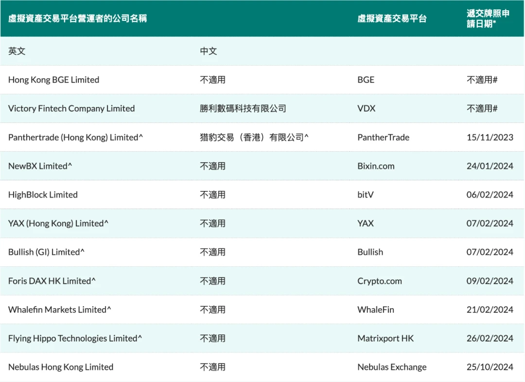 截至2025年1月11日,香港证监会正式批准了7家虚拟资产交易平台,允许其在香港合规开展虚拟资产业务。