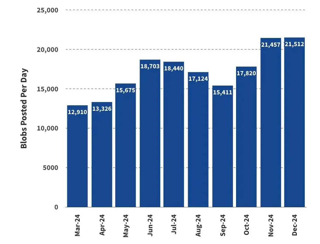 以太坊生态在2025年迎来重大技术突破,其扩容能力预计将提升200倍,进一步巩固其在公链竞争中的领先地位。数据分片(Blob Space)作为关键升级之一,已创下10亿美元的手续费收入,主要得益于Layer-2网络的爆炸性采用、Rollup技术优化和高手续费场景的引入。
