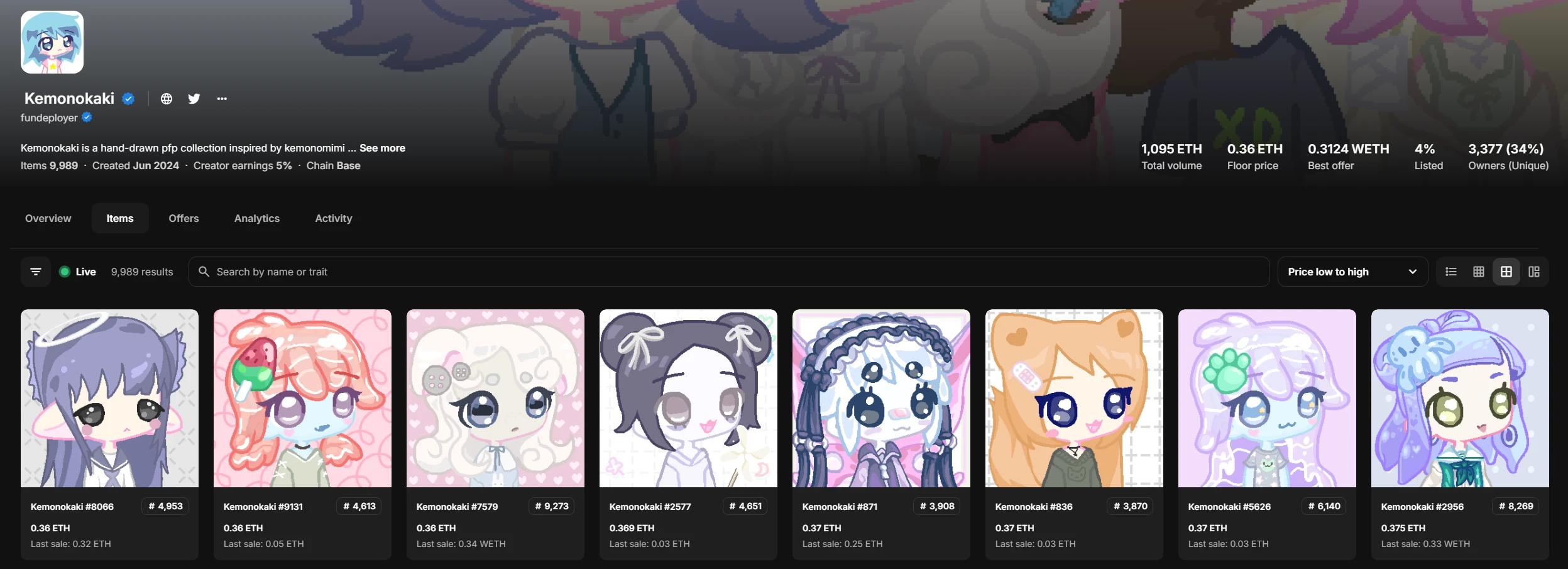 Kemonokaki 被许多人视为 Base 链上的 Milady,虽然严格来说它不完全属于 AI 赛道,但其近期表现值得关注。