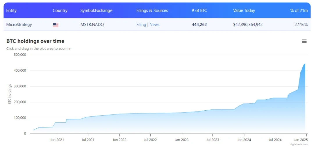 特朗普胜选后,MicroStrategy对比特币的投资力度显著加大。该公司在2024年第四季度新增购买了近15万枚比特币,总花费接近135亿美元,平均成本约为每枚9万美元。
