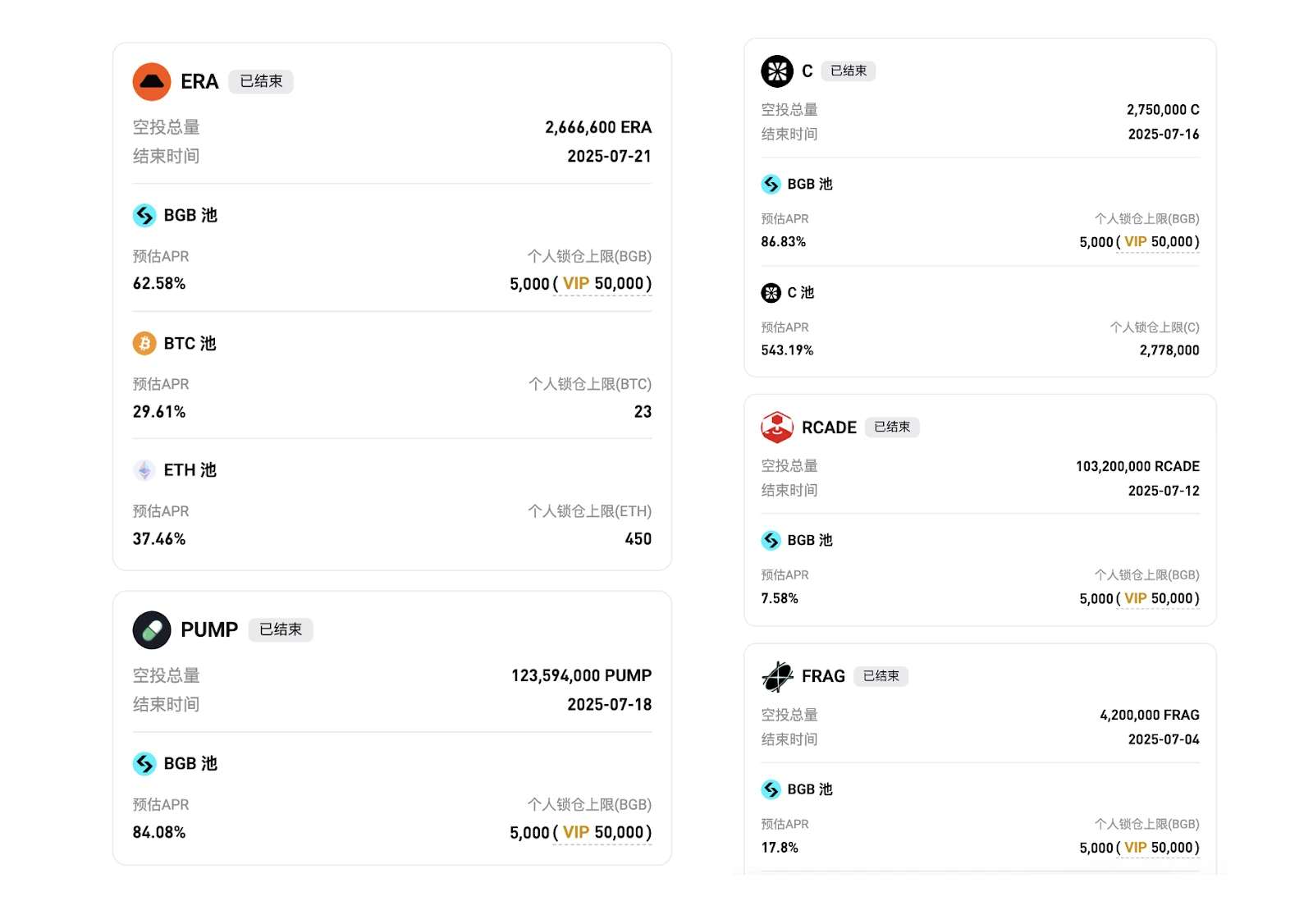 平台运作逻辑围绕"质押即挖矿"展开。用户将BGB质押至指定池后,根据质押量获得新项目代币分配份额。这种设计既拓展了BGB的应用场景,又通过项目筛选机制降低了投资者的选择门槛。从早期ENA、SONIC、ELX等项目验证模式可行性,到七月集中上线C、PUMP、ERA等明星项目扩大影响力,平台逐步树立起"高回报、低风险"的市场认知。
