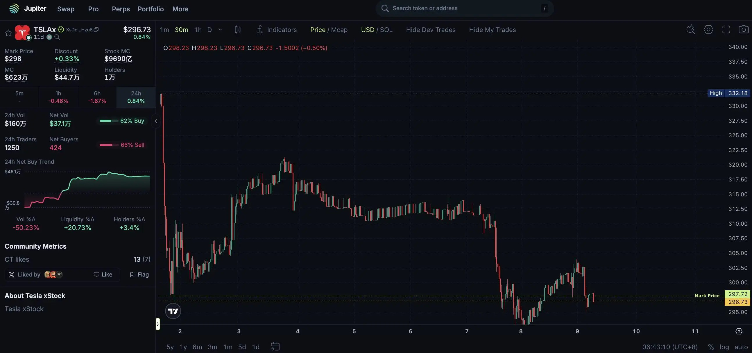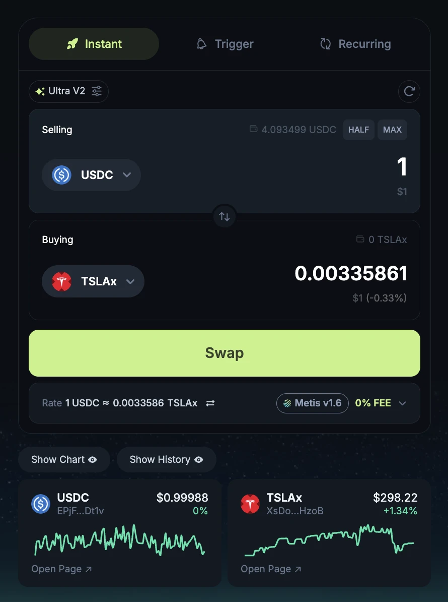 传统美股交易受地域时差与账户门槛限制,亚洲用户需深夜参与,高价股(如伯克希尔A股)对散户极不友好。代币化后,基于区块链的AMM机制实现7×24小时连续交易,用户仅凭USDC与钱包即可买卖碎片化代币(如1美元持有0.001份TSLAx)。这不仅提升资金效率,更将美股可达性扩展至全球数十亿未被传统金融覆盖人群,使“全天候投资”成为现实。