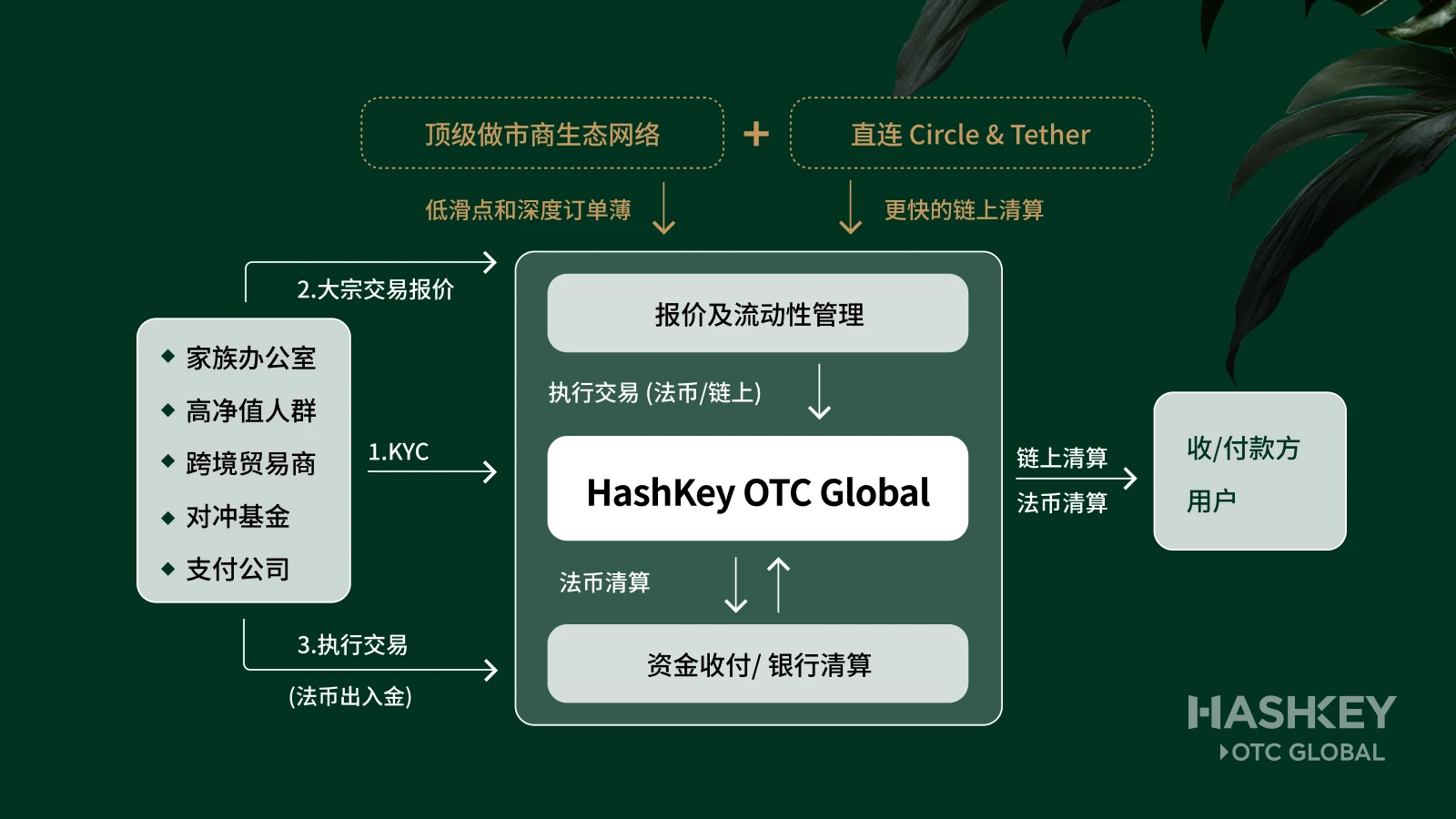 HashKey OTC Global的诞生,正是为破解这些行业痛点。其核心目标是构建覆盖“法币-稳定币-链上资产”全链条的价值传输网络,通过整合全球顶级金融机构资源、获取稀缺合规牌照、建立深度流动性网络,为机构客户提供从资金入场到资产配置、再到场景应用的一站式服务,降低传统金融与加密世界的交互门槛。