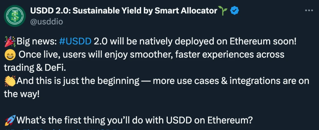 USDD 2.0上线后,凭借技术创新与多链战略,市场表现亮眼,社区治理机制逐步完善,推动项目向去中心化自治方向迈进。