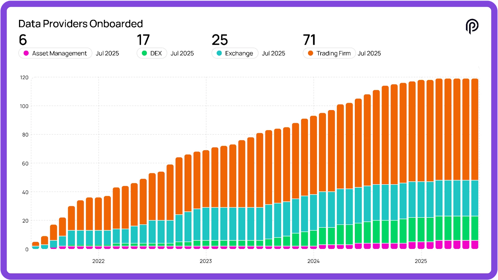 汇聚DRW、Optiver、Cboe等全球顶尖交易机构与交易所作为数据发布者,确保数据专业性与实时性。这些机构的专有数据覆盖传统金融与加密资产领域,形成其他预言机难以复制的数据源壁垒。