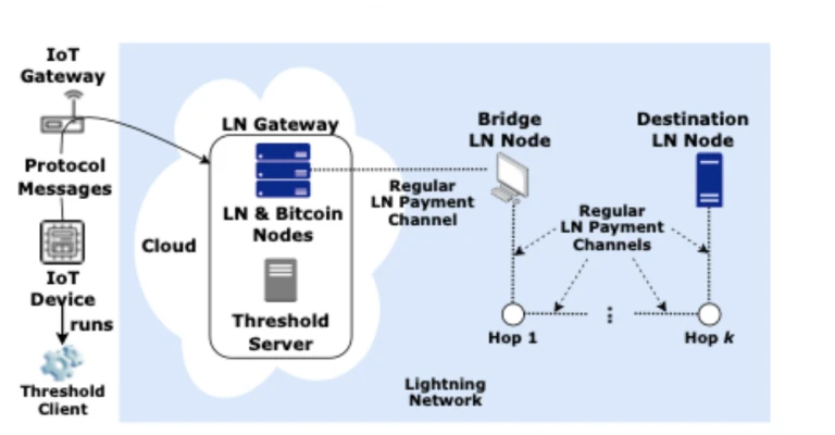 (Lightning Network,LN)已经用一种大胆的做法解决了这些问题 —— 链下支付。有了这一进步,用比特币来做小额支付也颇有前景,而且也能被许多 IoT 应用接受。然而,在 IoT 设备上托管闪电网络和比特币节点是不可行的,因为它们的存储、内存和处理开销。