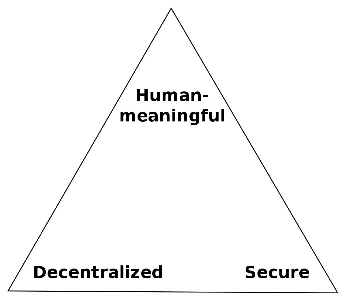 在介绍Namecoin之前,必须要提Zooko三角猜想。Zooko Wilcox-O'Hearn曾推测,任何一种命名系统都无法同时满足三种特性:可读性(Human-meaningful),安全性(Secure),和分散性(Decentralized)。也就是说,任何一种命名系统都要至少像其中一种特性妥协。例如,我们给小孩起名字,可以满足可读性和分散性,但却无法保证名字是唯一的(安全性);满足可读性和安全性的传统DNS,它是中心化的(不满足分散性);Tor暗网满足安全性和分散性,但域名确是随机字符串(无法满足可读性)。但Namecoin的出现,首次打破这个推测,实现了一种分散式的DNS。