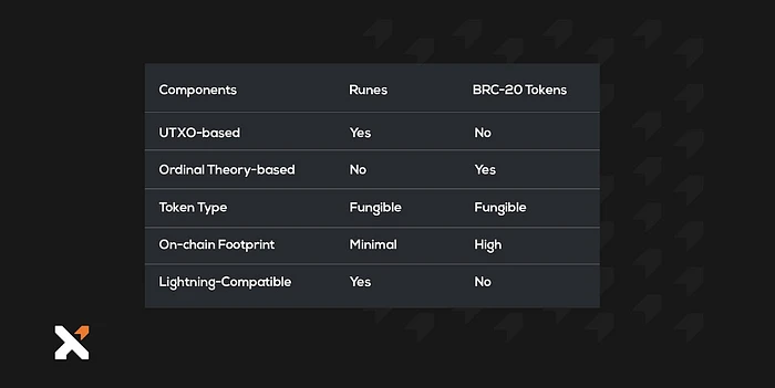 首先,Runes 协议具有出色的兼容性和可扩展性,可以与比特币的 UTXO 模型以及基于它的第二层协议(如闪电网络和 CKB)无缝连接。与其他 FT 协议(如 BRC-20)相比,Runes 通过简化交易流程并管理直接绑定到 UTXO 的 token 余额,从而显着提高了运营效率和用户体验。