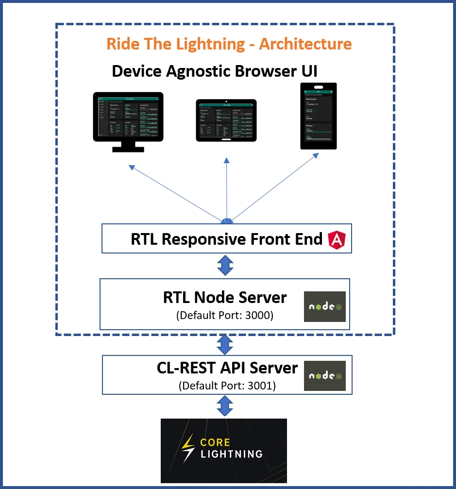 RTL 与 Core Lightning 节点的架构关系如上图所示。该图示直观展示了系统组件之间的连接与数据流向,帮助理解 RTL 如何与底层 Lightning 网络交互。这种架构设计增强了技术说明的可读性和专业性,为用户配置提供视觉辅助。