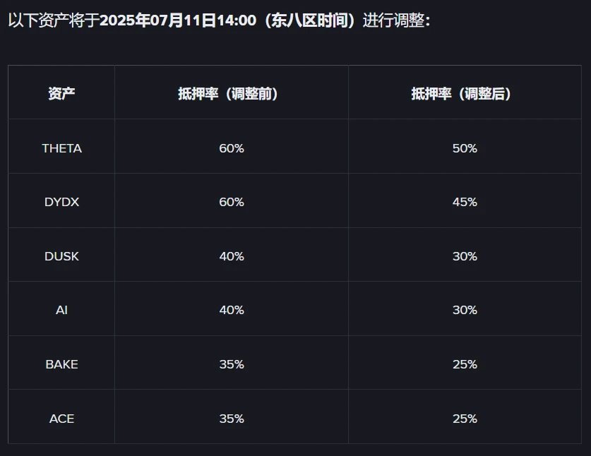 币安7月4日调整多资产抵押率