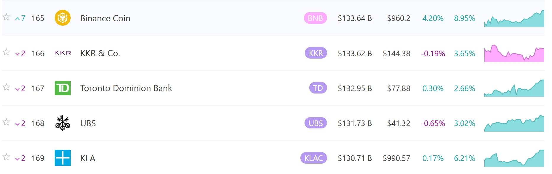 BNB市值创新高超越瑞银集团,位列全球资产第165位