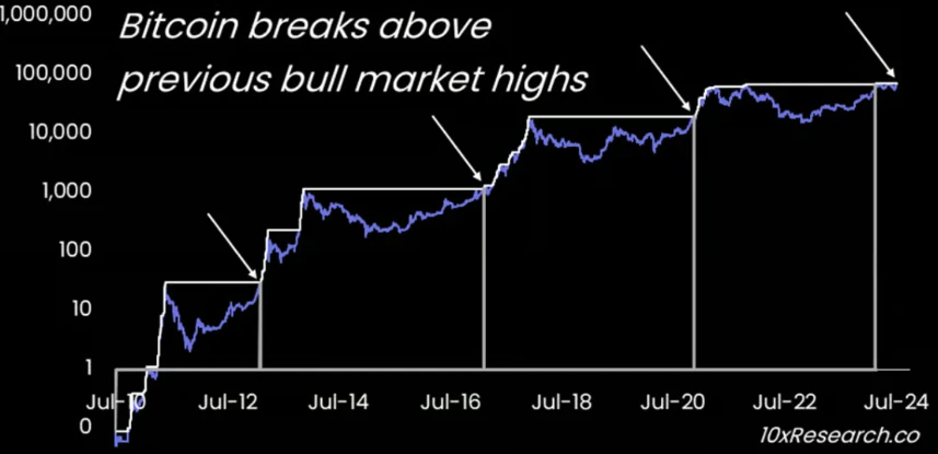 历史数据显示,比特币在突破前一轮牛市高点后往往会出现更大幅度的上涨。10x Research提供的分析图表显示,这种突破后的价格走势通常呈现加速上升特征。虽然短期受德国政府抛售和Mt.Gox还款事件影响,市场出现波动,但多数分析师认为最困难的时期已经过去,政治周期的转变可能成为新一轮牛市的催化剂。