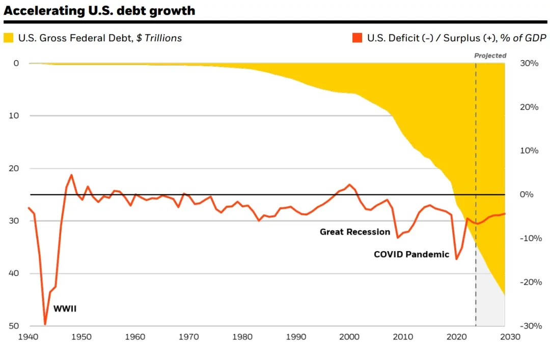 比特币正成为对抗美元体系风险的新型数字资产。其2100万枚的硬编码供应上限使其具备类似黄金的抗通胀特性,特别是在美国联邦债务持续攀升的背景下。数据显示,随着美国赤字占GDP比重不断增长,机构投资者正将比特币视为对冲美元潜在风险的替代储备资产。这种趋势不仅出现在美国,在债务问题突出的其他国家也同样显现。