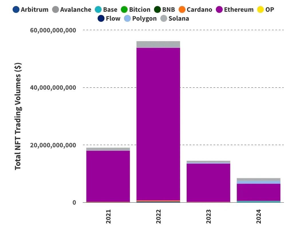 NFT 市场在经历 2022–2023 年熊市的严重冲击后,预计将在 2025 年迎来反弹,全年交易量有望达到 300 亿美元。