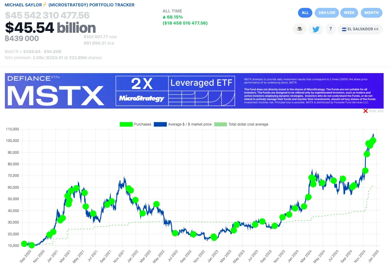 MicroStrategy是长期持有比特币的典型代表。该公司累计购入超过44.6万枚比特币,旨在抵御通货膨胀并强化财务稳定性。首席执行官Michael Saylor从最初的怀疑者转变为积极倡导者,他强调现金和低收益债券容易受到通胀侵蚀,而比特币是对冲无限量化宽松的长期手段。