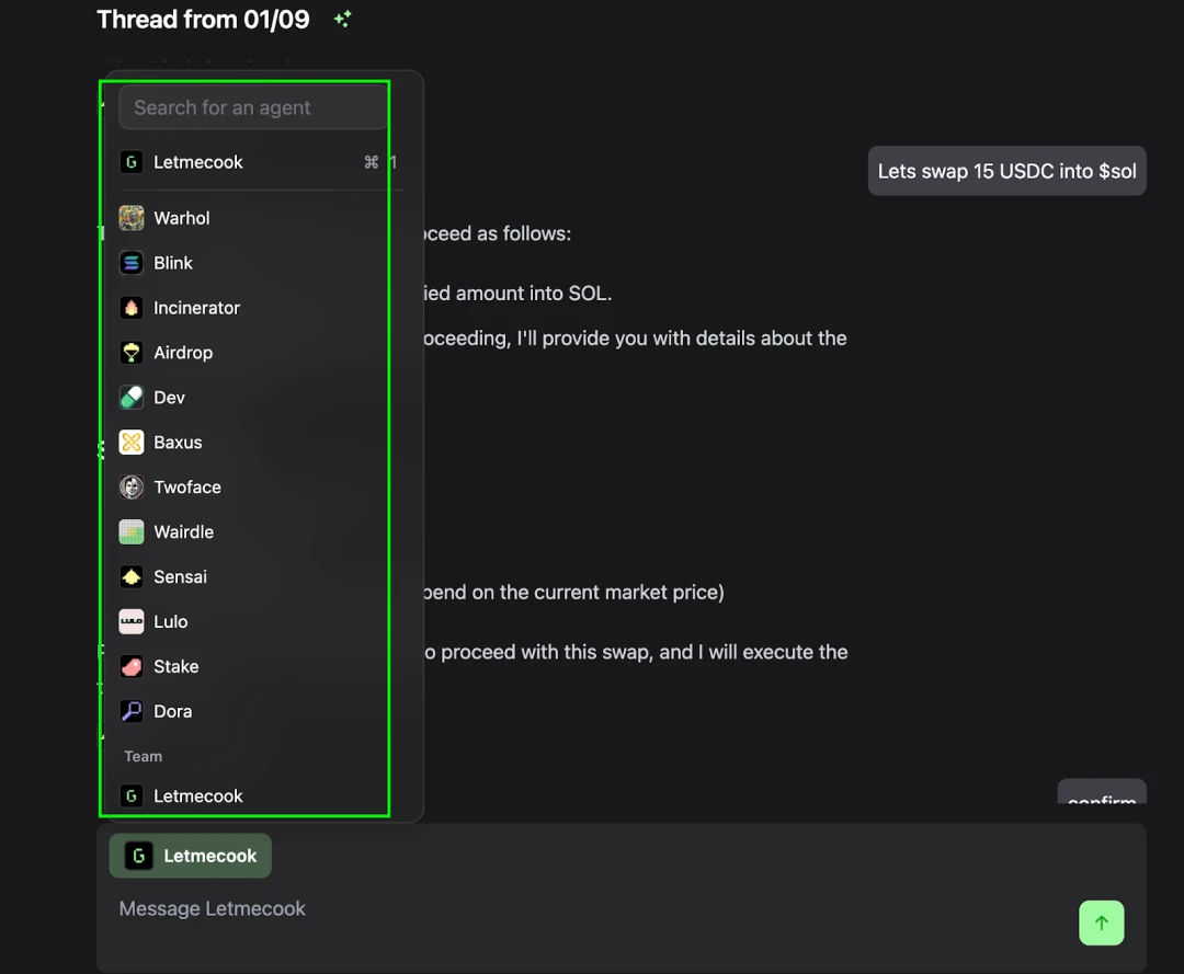 Griffain作为Solana上领先的抽象AI工具,通过其多代理协作系统显著扩展了功能边界。该系统允许多个AI代理在同一个聊天环境中协同工作,既能独立处理复杂任务,又能保持高效协作。例如,用户可同时调用“空投代理”执行代币分发,又使用“质押代理”优化挖矿策略,而无需切换界面。