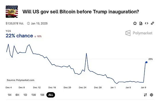 市场预测平台PolyMarket上的投注情况反映出市场预期。关于"美国政府会在特朗普就职前出售比特币吗?"的赌注交易量已达136,310美元,市场预测特朗普上任前出售比特币的概率为22%。这一数据表明,尽管存在清算许可,市场对实际抛售的预期并不高。