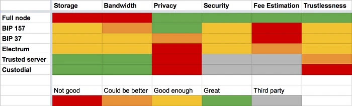如上所述,完整节点要求大量资源,而SPV客户端向不受信任的节点泄露敏感的财务信息,并且更易受到攻击。两个类型的钱包的用户体验也受到影响,因为初始头部同步可能在移动设备上耗时超过15分钟。