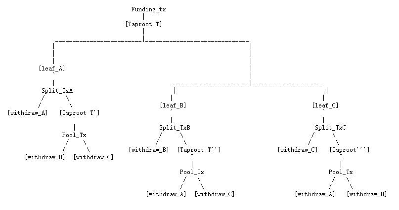 它需要用户有持久的存储空间。因为单方面取款预设了退出者可以提前获得其他参与者的签名,这些签名以及对应的 Taproot 输出和默克尔分支不能弄丢或被毁坏,否则参与者将不能无需协助就退出资金池。