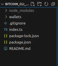 我们首先创建一个名为“ Bitcoin_Cli_Wallet”的新文件夹,然后进入该文件夹并运行命令“ npm init”。这将初始化一个新的节点模块,并在目录中创建 package.json 文件,之后我们在根目录下创建一个名为“ wallets”的新文件夹。然后我们运行命令“ npm i -D typescript ts-node”,这将安装 TypeScript 和 TypeScript 执行环境,以便让我们在 Node.js 中执行 TypeScript 代码。接下来,我们通过运行以下代码来安装我们将使用的库:“ npm install bitcoinjs-lib”,“ npm install ecpair”,“ npm install tiny-secp256k1”,“ npm install crypto”,“ npm install dotenv”。这其中除了 dotenv 库外,其他的库已经提到过。dotenv 库帮助我们将代码中需要的私密数据或信息保存在一个单独的文件中,以免其暴露在代码的其他部分。