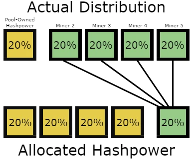 有了 BetterHash,矿工就可以运行自己的节点、选出交易、创建区块,然后开始挖矿。这个区块将被配置成把收益交给矿池,而且,跟 Stratum 协议一样,那些不成功的区块( 叫做 “份额(shares)”)将被矿工用来证明自己一直在给这个矿池挖矿。