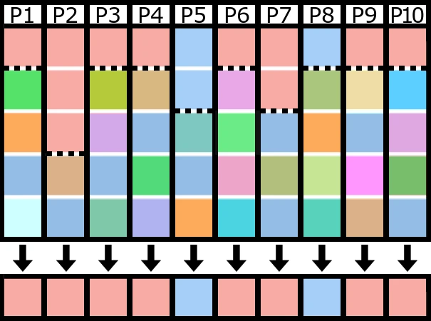 - 每一列都表示一个矿池;每一列的顶部都表示该池自己拥有的算力,而底部则用来表示使用该矿池的矿工的多样性 -
