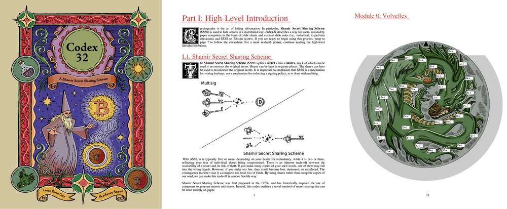 今天,我们推出了一本小册子《 》,你可以在 Blocksteam 商店里买到。Codex32 包含了用于 以及私钥分割的工作表(可以撕下来)、可以裁剪和组装的纸上计算机、用来消除骰子的滚动误差的工作表,以及由 Micaela Paez 和 M. Lufti’ As’ad 创作的精美图画。